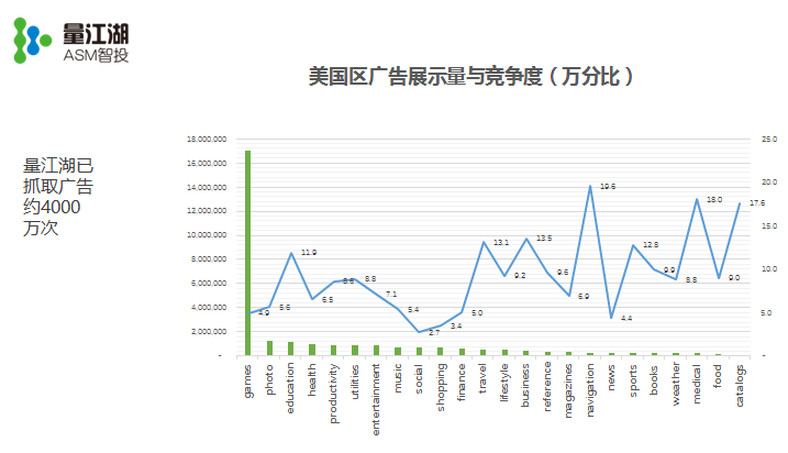 量江湖ASM收录美国区APP总数193万,游戏占比22%
